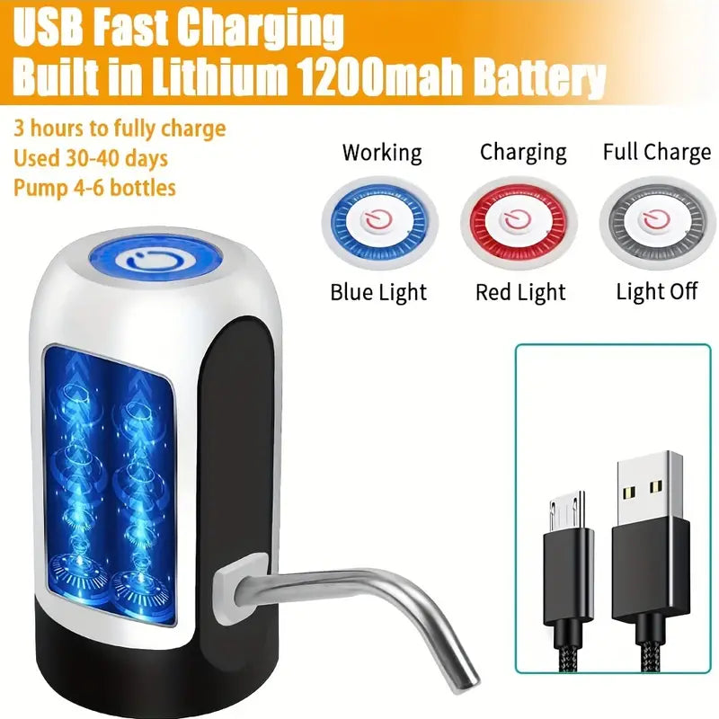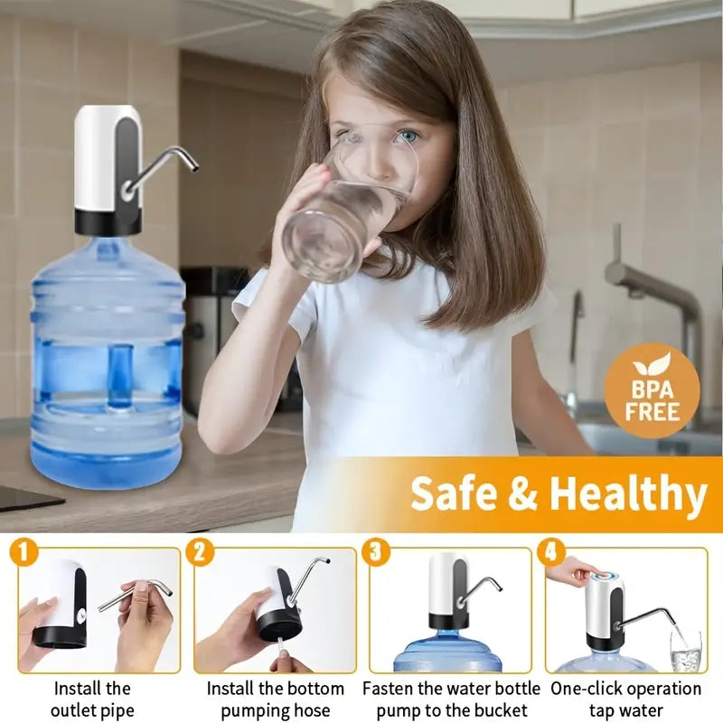 Powered by a USB charging system, this device eliminates the hassle of manual pumping. Simply charge it, and you're ready to enjoy fresh water at the push of a button. Its rechargeable batteries ensure that you can take it on the go without worrying about finding an outlet.