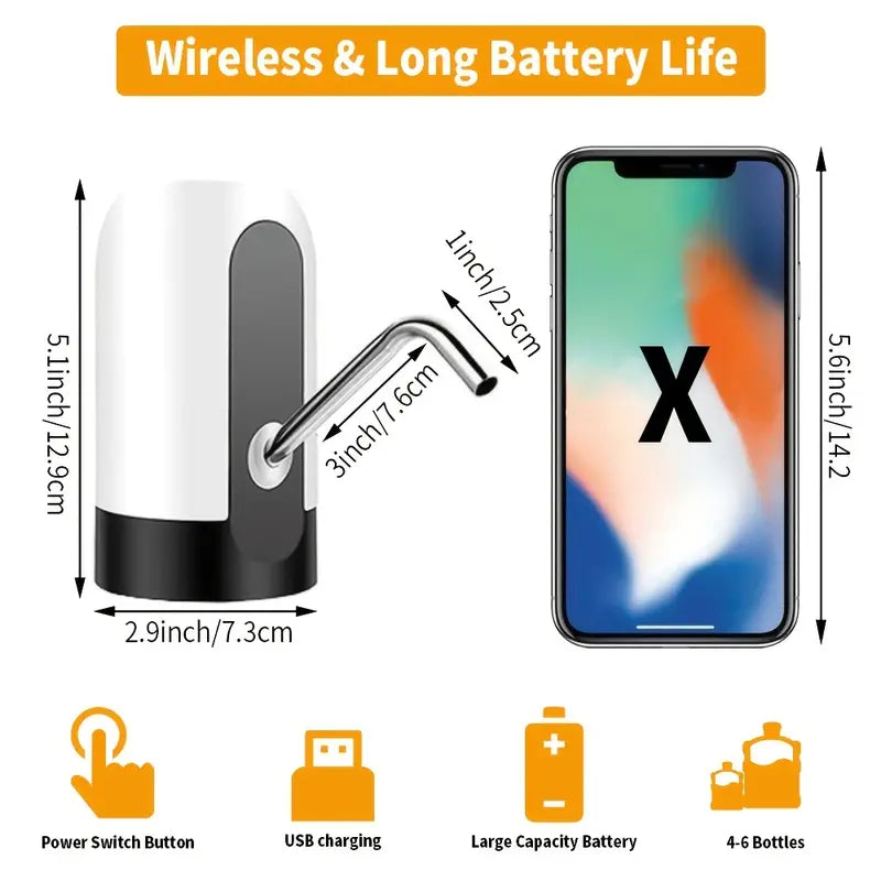 Stay hydrated effortlessly with our USB Charging Automatic Water Dispenser. Designed for convenience, this portable electric drinking water pump is perfect for home, kitchen, office, or even on camping trips. With a sleek and modern design available in white and black, it seamlessly fits into any environment.
